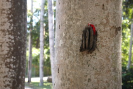 In Havana, I found some bananas hanging on an elegant, huge imperial palm tree, tied with a red node. It was when I discovered that besides being the symbol of Cuban Constitution, printed in the back of some C.U.C. coins, the Imperial Palm Tree is also the tree of Sango (Written Changô in Cuba, and Xangô in Brazil). And Sango, the King of justice, likes bananas.The status symbol of the imperial palm tree was also spread during colonial times in Brazil. The King John VI of Portugal planted the first one in the Botanical Gardens of Rio de Janeiro and forbid the selling of the seeds. But Sango made his intervention: at night, enslaved people would climb the tall trunks and steal the seeds, which they would sell next. Bit by bit, seeds were transformed into coins, used to buy their freedoms.