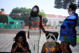 Dilena Baldé Sanca Rodrigues e Lilian Aldina Pereira Mendonça, from Guinea Bissau, and Daisy Francisco e Maria Josefa Miguel, from Angola, inhabiting the landscapes of one of the remaining farms from the XIXth Century at São José do Belmonte, hinterlands Pernambuco.
