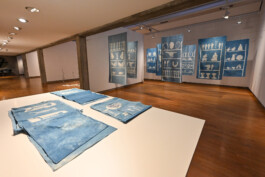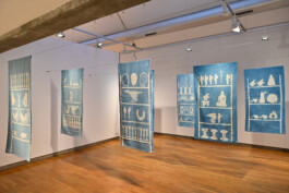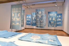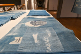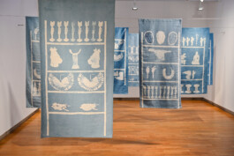 In the works of the ‘Dreaming Dashes / Transatlantic Crossroads’ series, works of art from Brazil and West Africa, housed in the collections of German museums, are printed onto cotton fabrics using the batik printing technique.