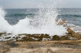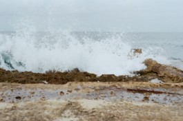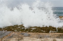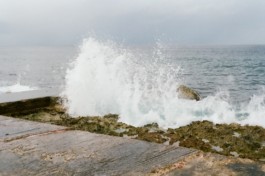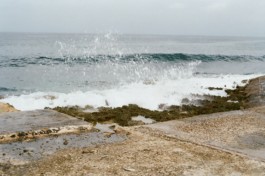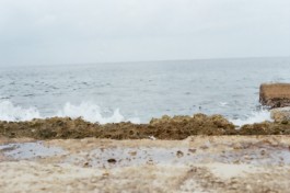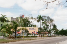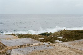 Socialist sentences found in the streets of Havana join extracts of the Cuban Constitution and some images of the Caribean Sea, Playa de la Calle 16, in Miramar, district of Havana.