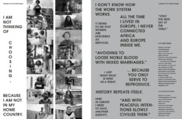 Alongside the photographs, a two channel video installation presents these same women reading and commenting on excerpts from the diary of the German naturalist Georg Heinrich Langsdorff and the biography of Mahommah Gardo Baquaqua, a native of Zooggoo kept as a slave in Brazil. By juxtaposing scenes of the women reading, the work reveals tensions that come from the meeting of multiple cultural perspectives. The historical distance of these texts, written in the nineteenth century, is updated and played with in the present, serving as a place for reflection on the current condition of migrant women.